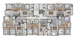 8 apartamentos de 2 dormitórios com área privativa de 80 a 85m2.